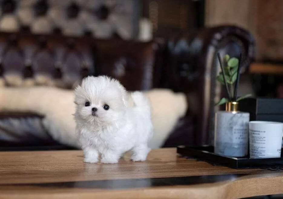 Averagely, the height of a full-grown Teacup Maltese adult is 8 inches, with a weight of 2-4 pounds. These puppies are so small that they can fit in a teacup, which is where the name is derived. They have big, dark eyes with a black nose that contrasts their white coat.